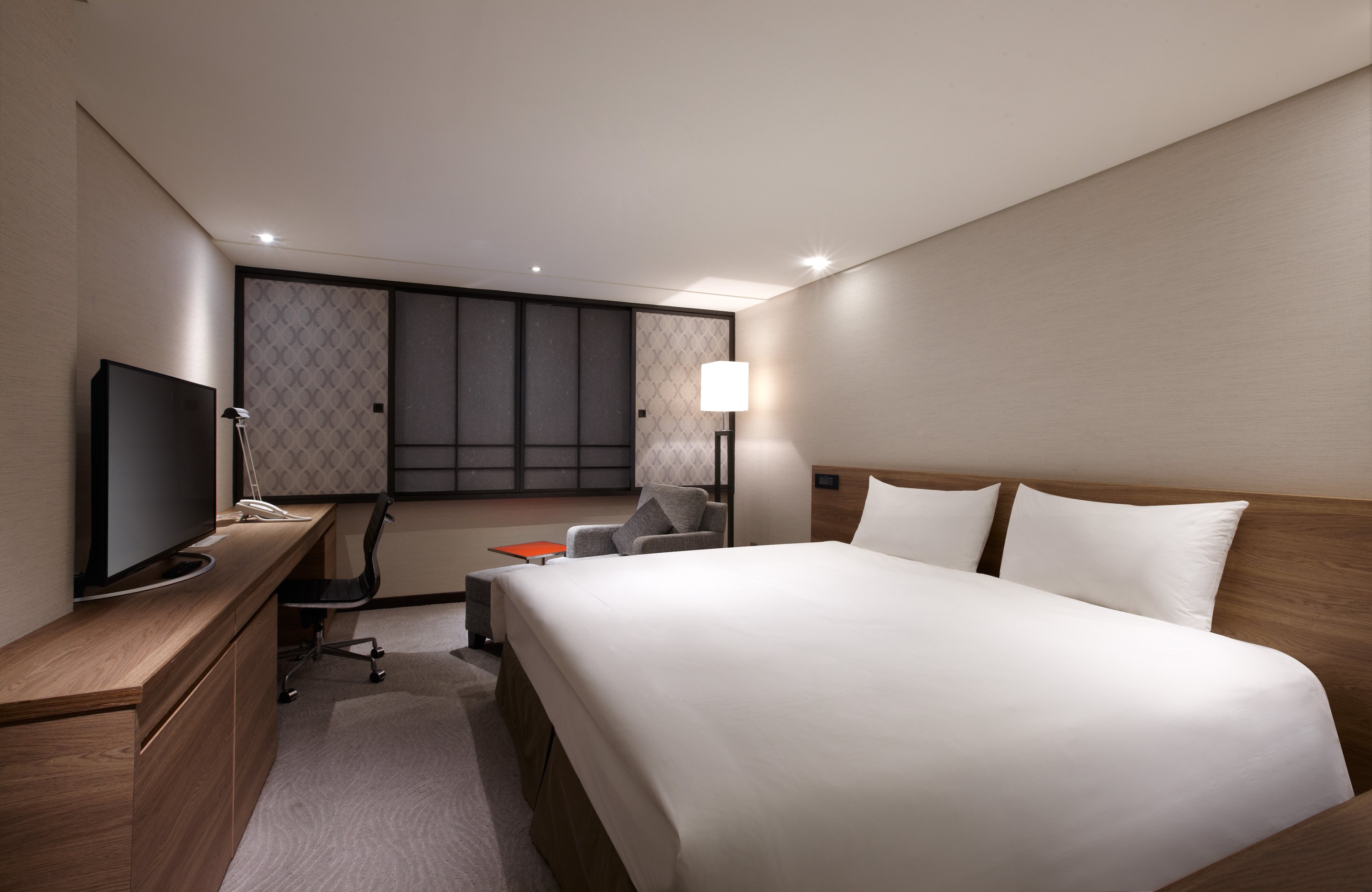 The Business Room has a simple design and lines. The space of about 23m2 has neat and minimalistic furniture. Guests can choose one double king bed or two standard single beds, and the room has a Washlet toilet and separate shower, making it more flexible for your stay. It is suitable for travelers in groups or business travelers.
