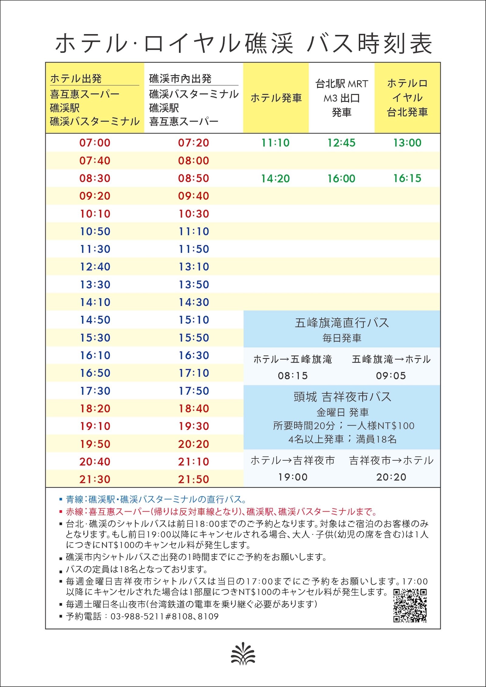 ホテル・ロイヤル礁渓 バス時刻表