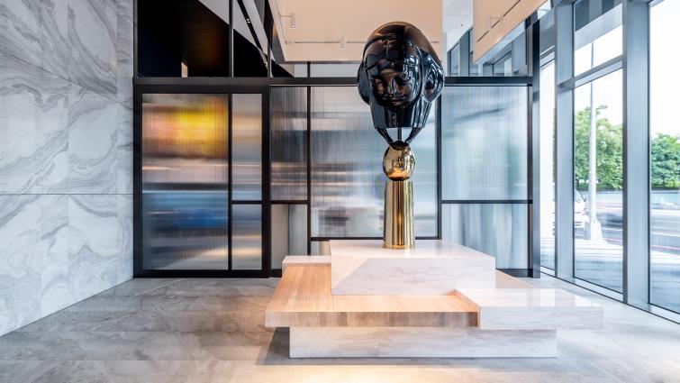 作品のテーマ:Golden Egg 芸術家:崔永嬿 作品の媒材:ガラス繊維、ステンレス 作品年份:2018 作品の内容:この作品は、「デンデンつま先サーカス劇団」シリーズの延長で、「デンデンつま先サーカス劇団」は現実に存在できない、幻想の世界にのみ存在するこびとたちによって構成されるとても魅力的なサーカス団。このサーカスの世界に入れば、しばらく現実から離れて、はかなく美しい世界へ行くことができる。「金蛋」はこのサーカスの一員で、おどけた愉快な姿で金の卵を踏みつけるパフォーマンスは、まるでお客様に「ようこそ!」と呼びかけているよう。