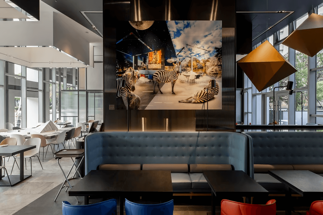 작품명:사랑하 는 일상 작가명:Huang Chien Hua 재료:디지털 몽타주, 레이저 인화지 출력, 크리스탈 마운팅 제작연도:2018 세계는 역할과 커뮤니티가 있는 상상의 게임이며, 사람들은 기꺼이 그 역할을 수행하고 복잡하게 뒤엉킨 레이어 속을 미친 듯이 넘나듭니다. 레스토랑 이름에 걸맞게 얼룩말과 그 이미지를 반영하였고 음식이 즐비한 낙원을 배경으로 했습니다. 작품 속 얼룩말은 발을 들며 여러분을 멋진 식사 자리로 초대합니다.