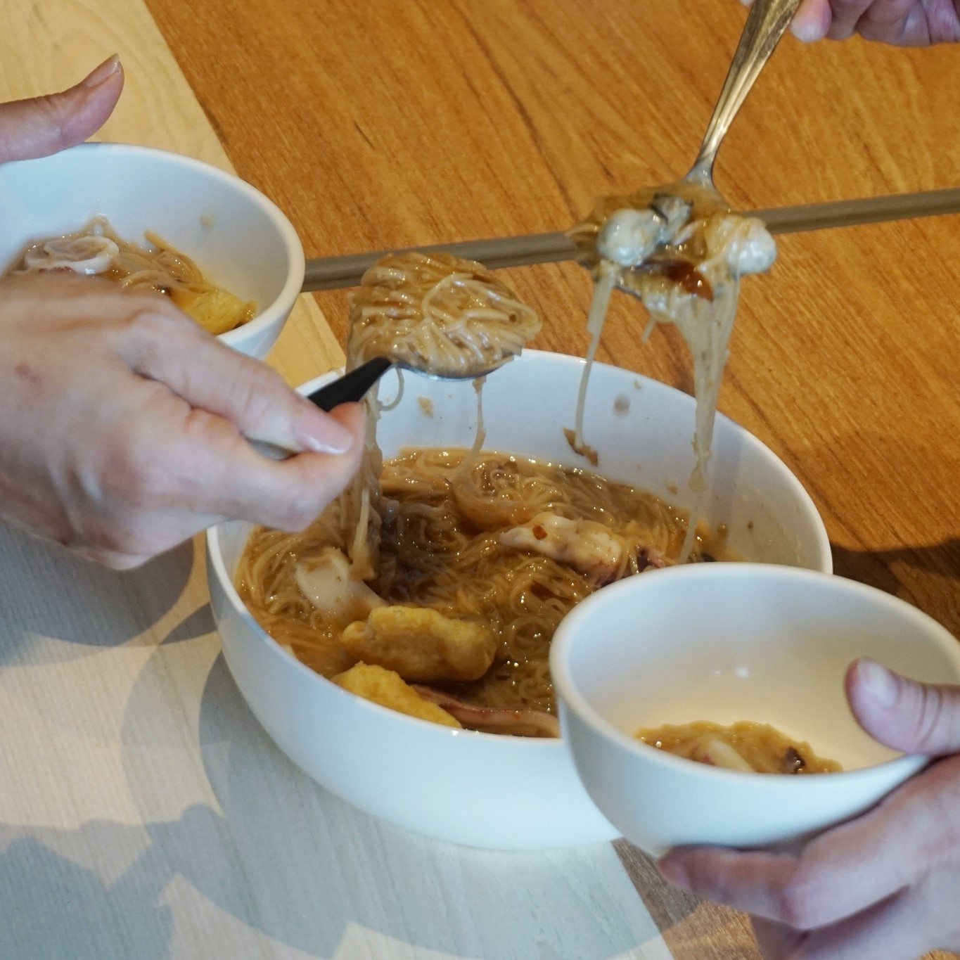 湯匙一舀,蚵仔、大腸、小卷滿滿一口。蒸氣升起,香氣繞開對話。「這碗麵線,太實在了。」有人笑著說,有人拍照留念。老爺夥伴圍在一起,分享對味道的偏好,笑聲此起彼落。浮誇的料、多得出奇的誠意,像每一位老爺人:踏實、帶著溫度,也帶著一點俏皮。