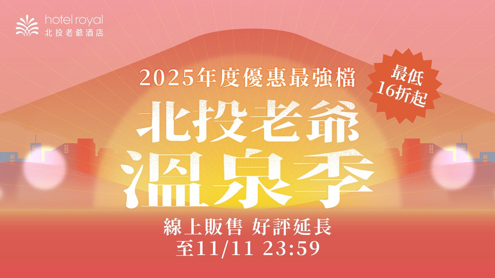 北投老爺溫泉季!好評不斷,熱烈延長~~人氣熱銷商品限量開賣,住宿、泡湯、用餐最低1.6折,限時開賣至11.11,把握難得機會!!