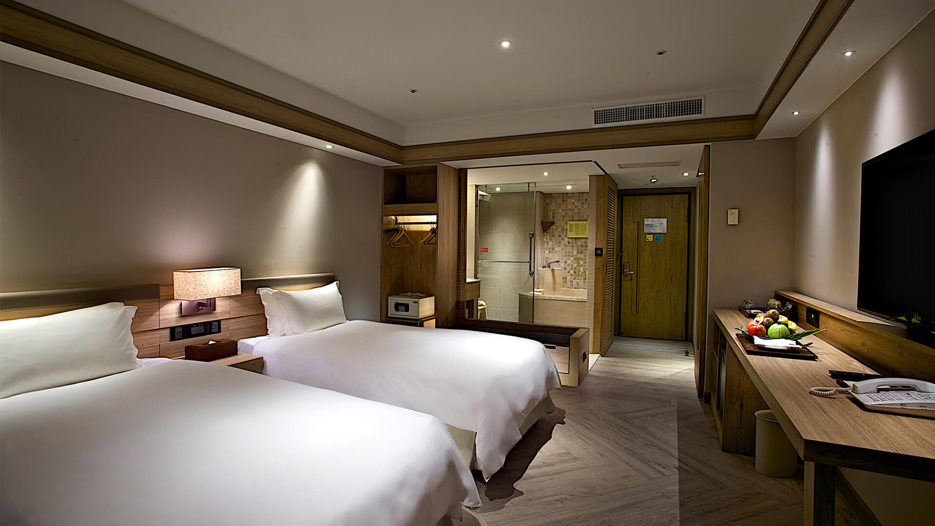 山景繚繞的雙人客房,以時尚木質設計,搭配原住民圖騰元素,巧妙融合現代感與文化品味,打造出簡潔又溫馨的住宿空間。精緻客房提供一大床或雙小床兩種床型,為泡湯旅行最佳選擇。 *客房備品以實際擺放為主