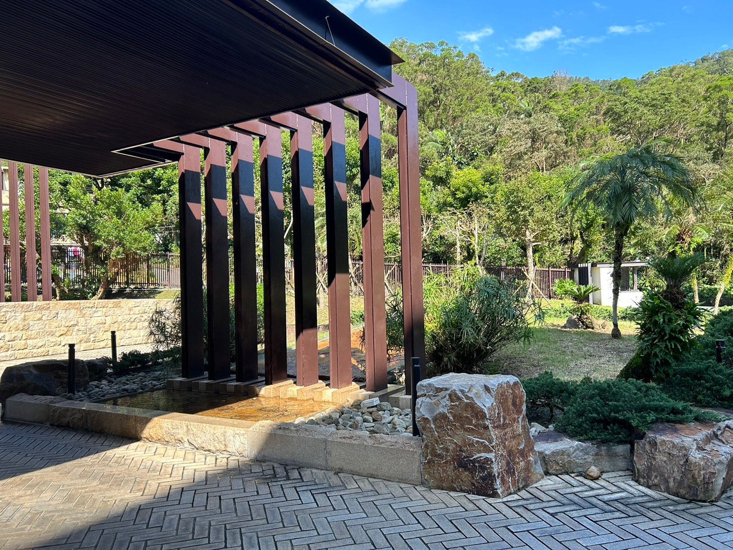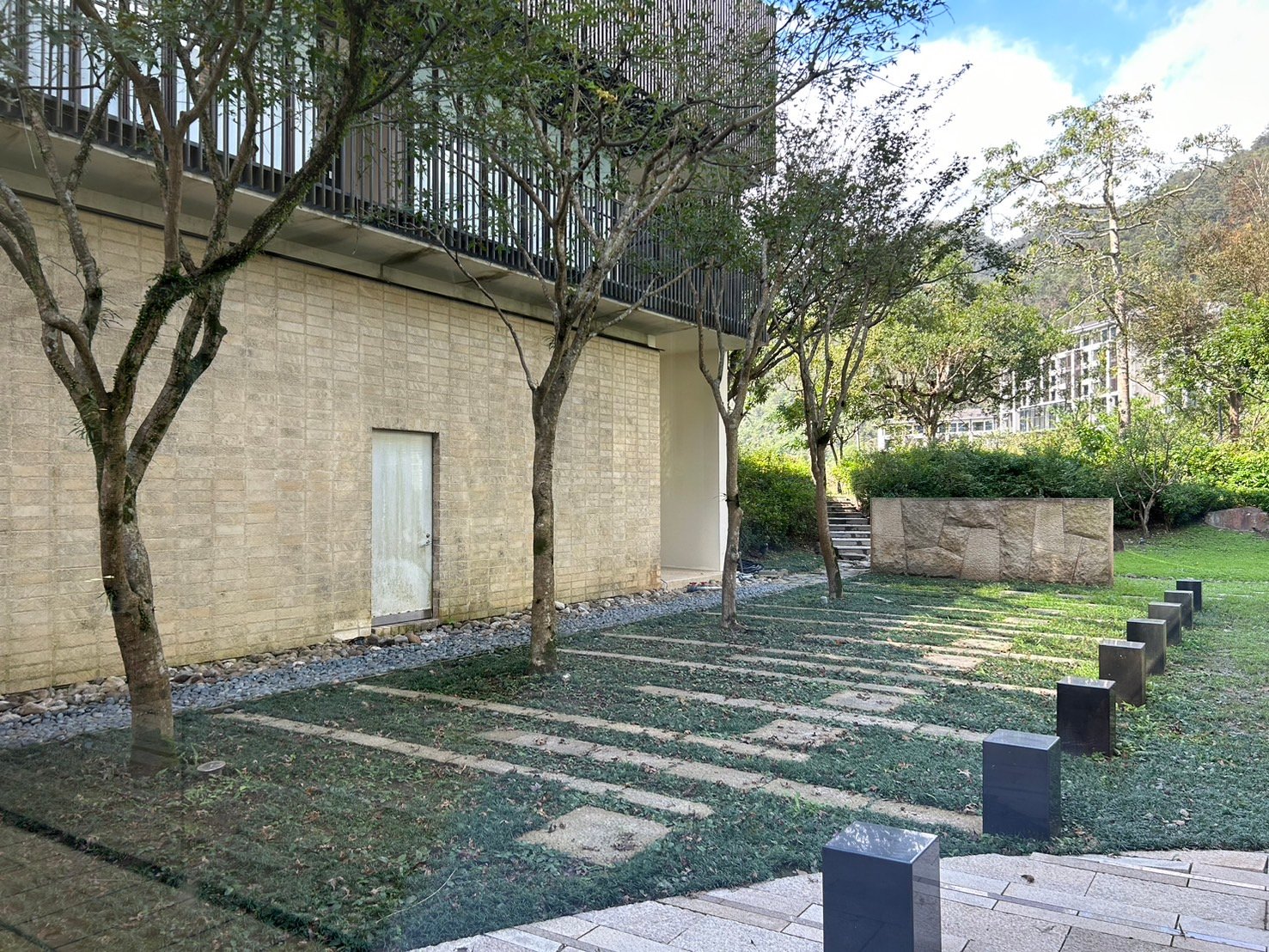 伊藤設計師以「綠水之庭」、「月影之庭」、「石草之庭」、「綠風之庭」、「風光之庭」主題景觀花園,詮釋季節的節奏感,大片穿透的落地窗、創造視覺連續感的開闊空間,綠意盎然、花草扶疏之景,瀑布流水貫穿其間,邀旅人緩步散策於芬多精能量場之中,感受彷如置身世外桃源的感動。