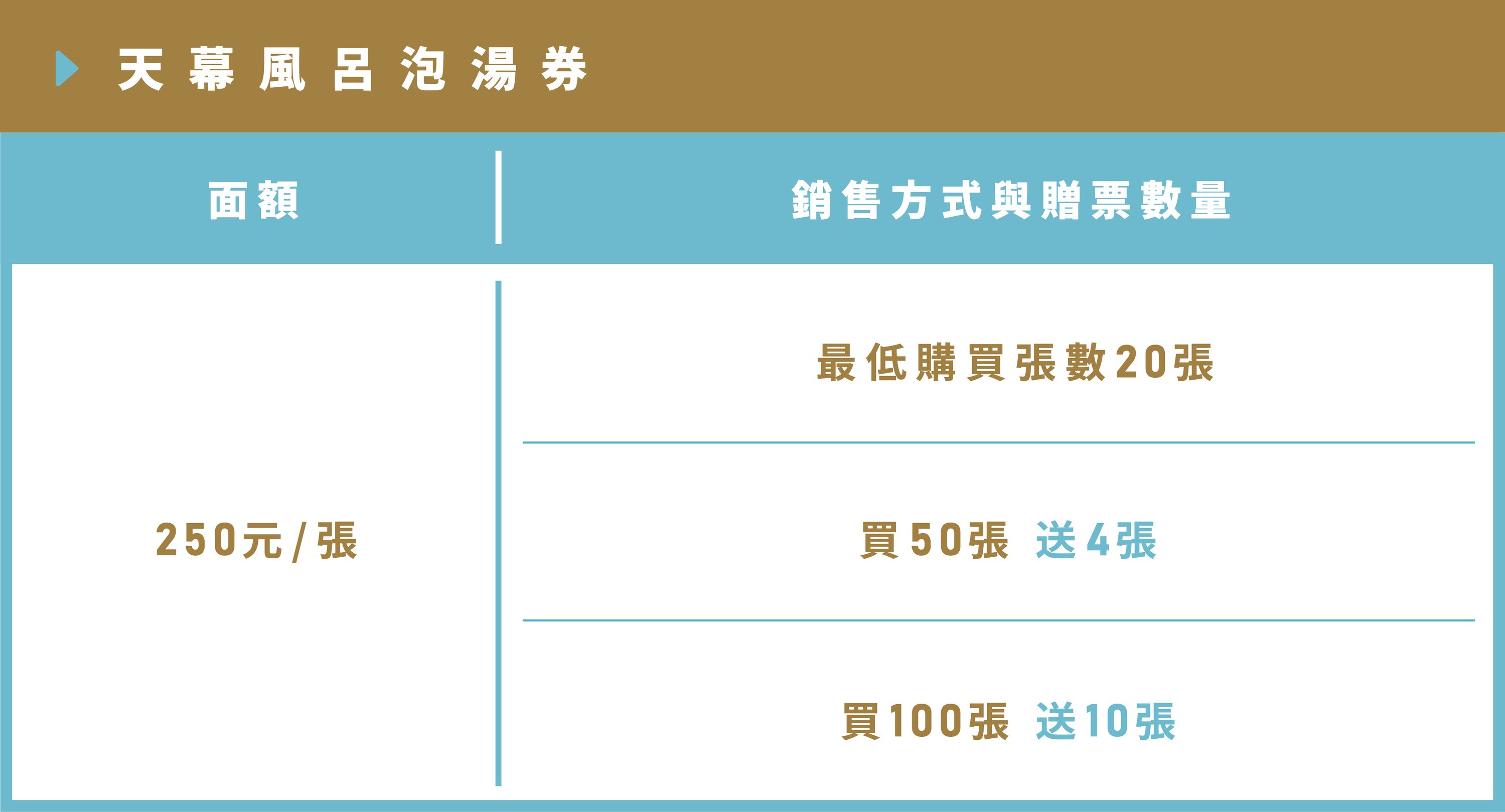 - 天幕風呂已銷售之逾期泡湯券,不需補差額全數自動展延至2025年12月31日止。