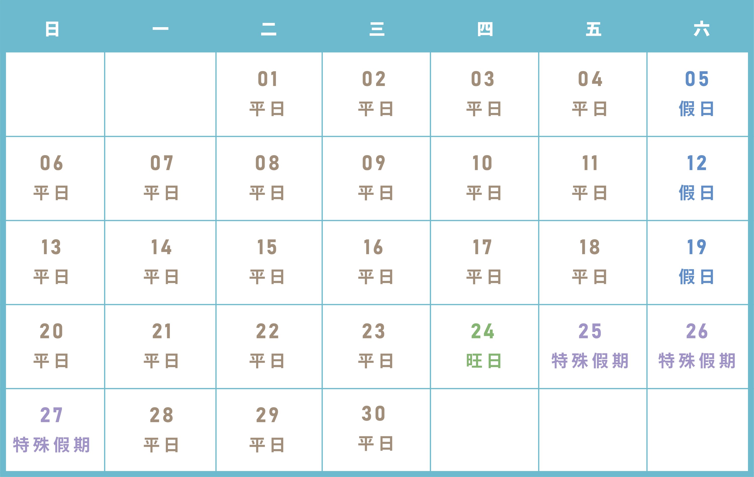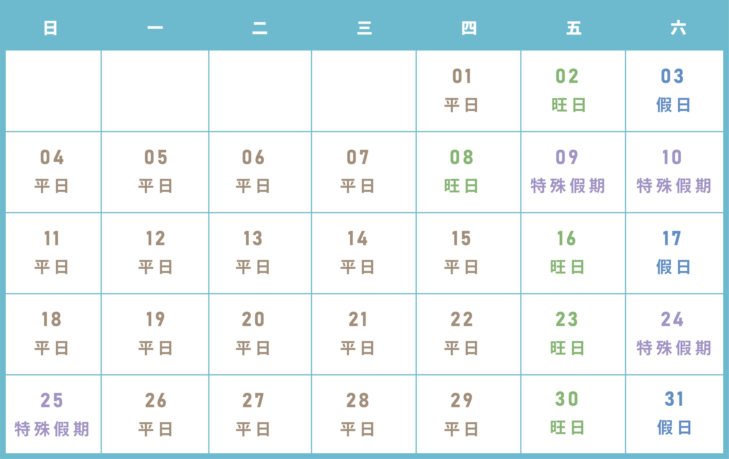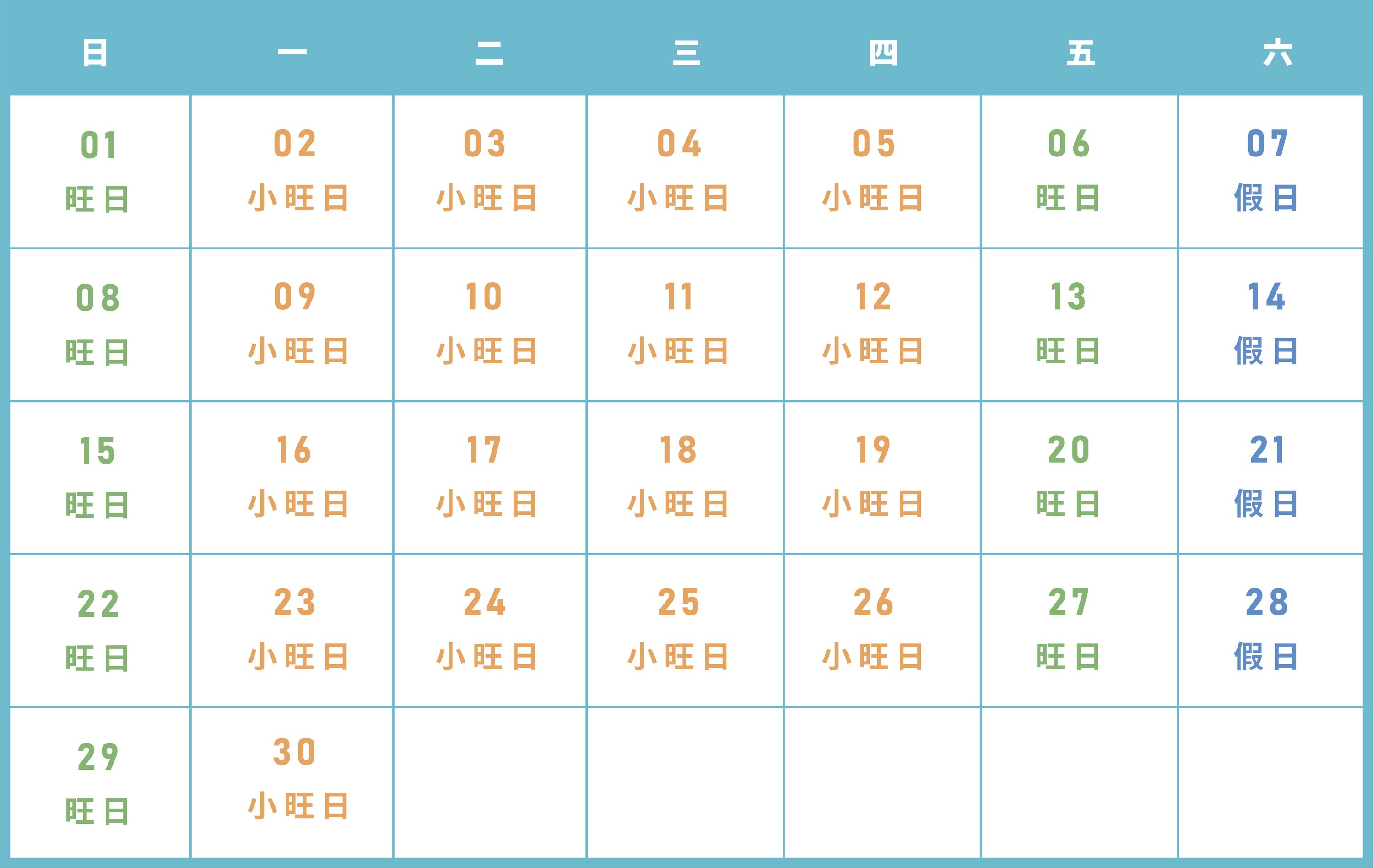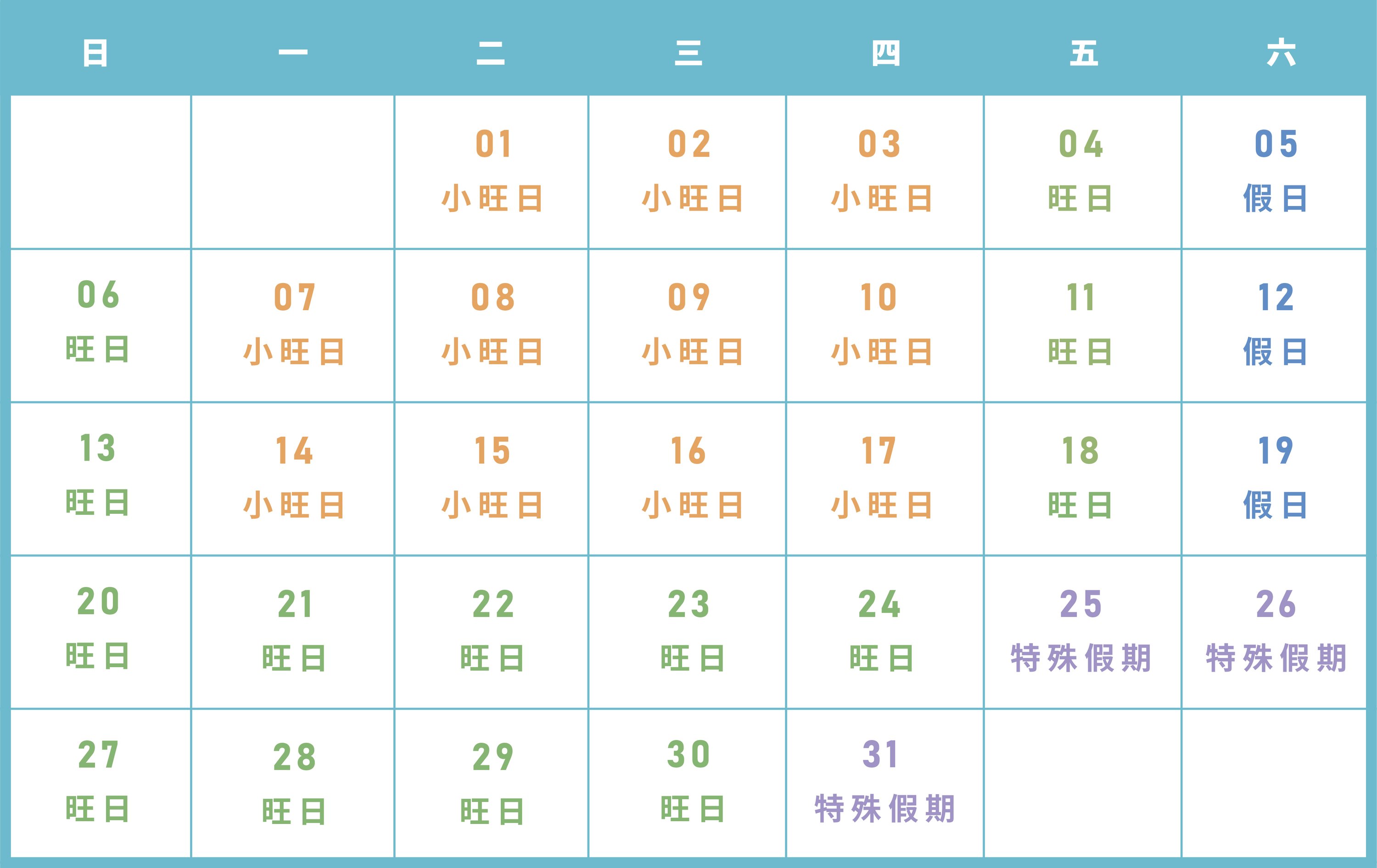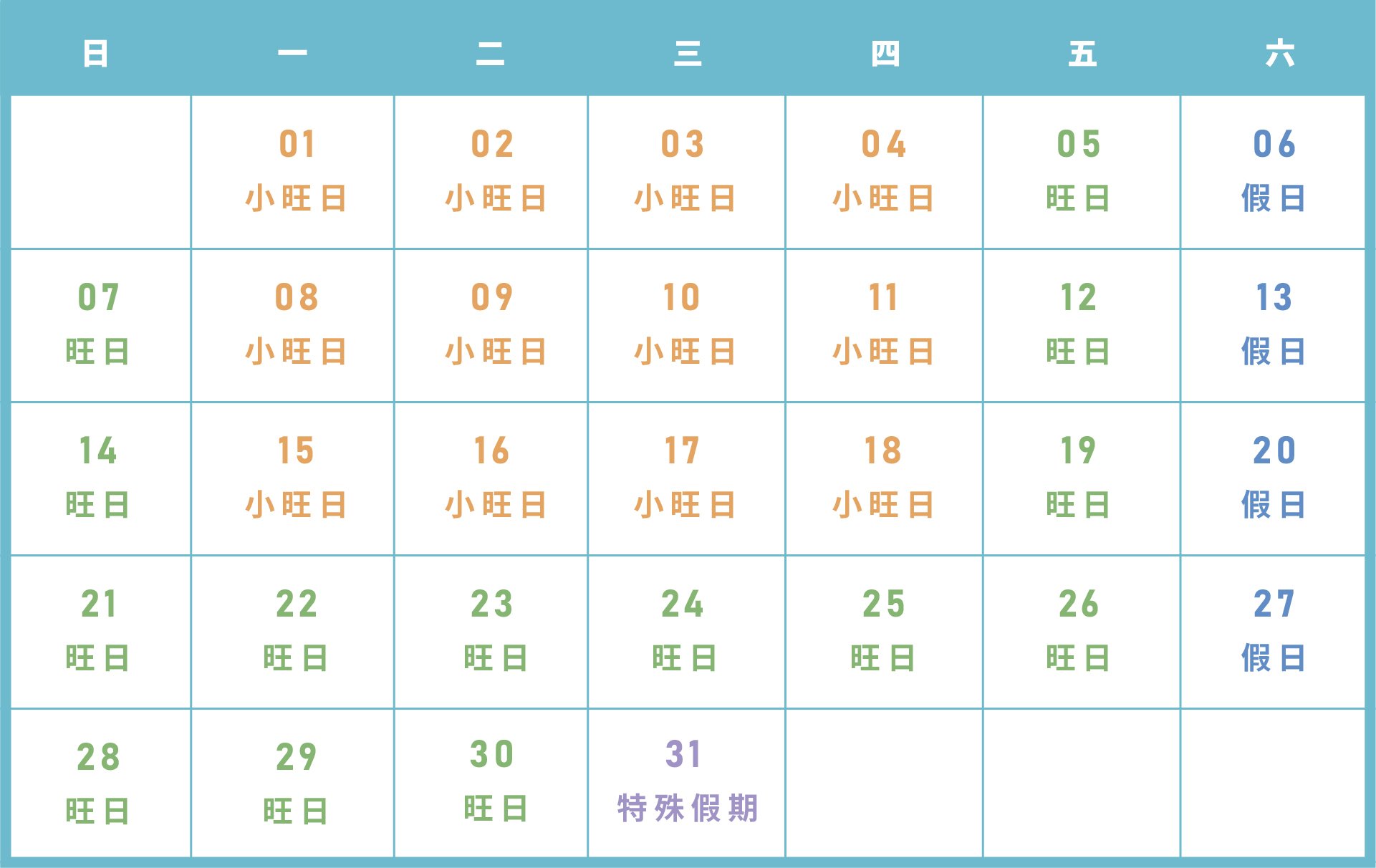 平旺假日區分表