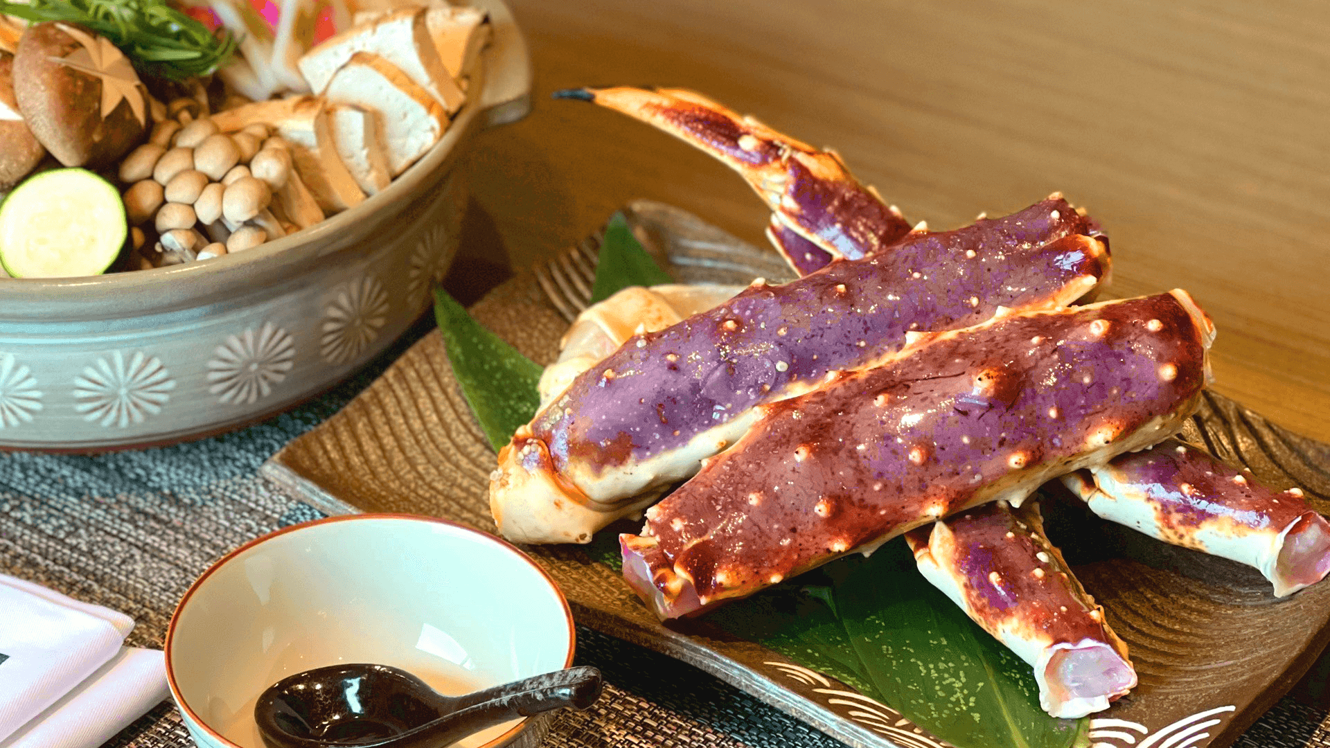 Q彈鮮嫩的鱈場蟹、搭配昆布野菜鍋物、嚴選刺身盛和、蟹肉福袋煮。
