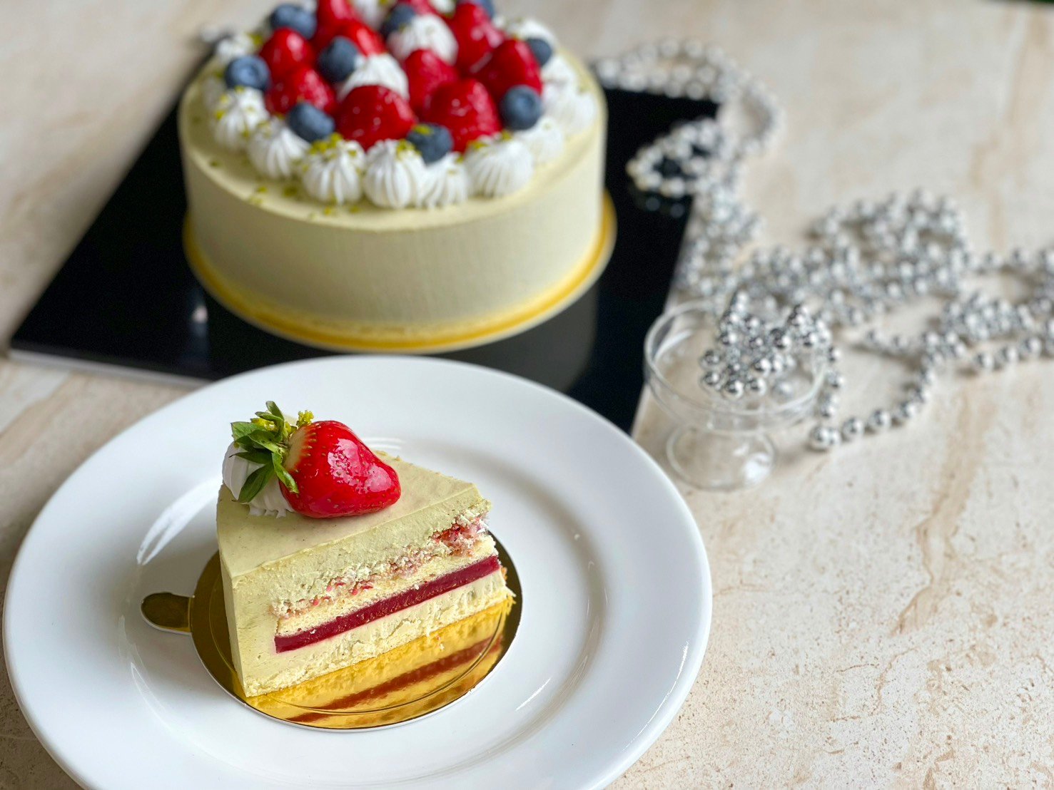 草莓與開心果交織出的細緻層次,為味蕾帶來清新而優雅的甜點體驗,