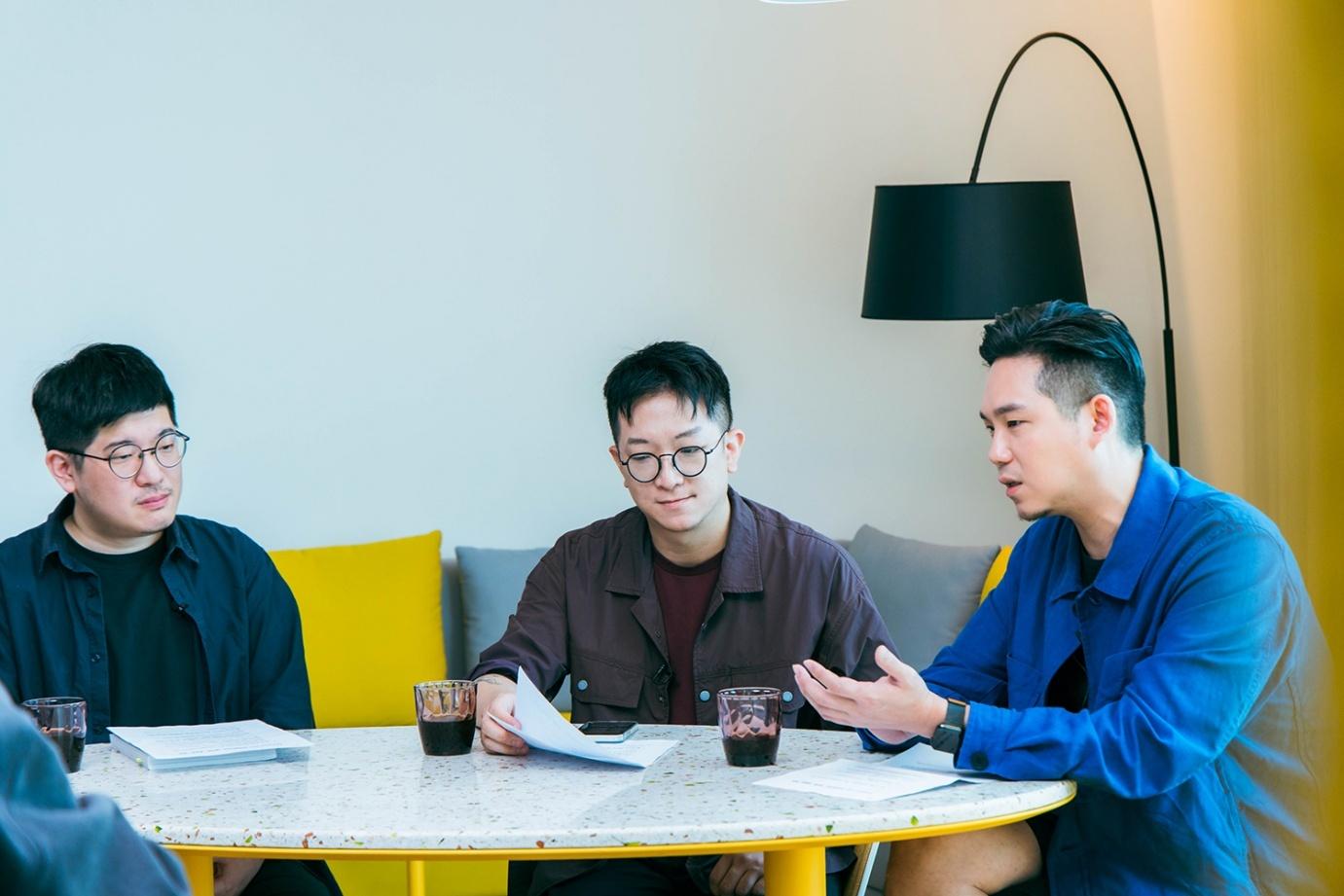 三頁文設計創辦人顏伯駿(左)、陽明交大應用藝術研究所助理教授顧廣毅(中)、中華民國藝評人協會現任理事長陳晞(右)。
