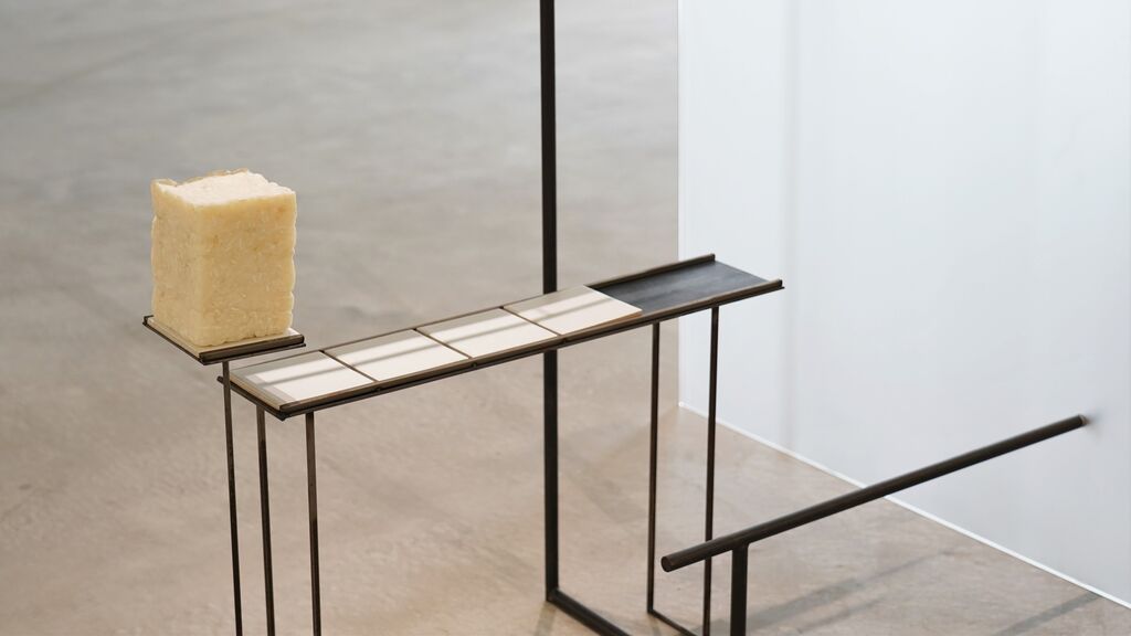 「詩性維度」展覽-徐瑞謙│浴室-乾濕分離│玻璃、肥皂、鐵、毛巾、不鏽鋼│尺寸依場地而定│2021 (照片提供:毓繡美術館)
