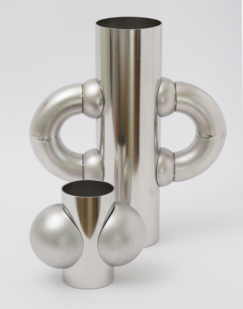 「臍加厝手路金工」兩位負責人王譽霖、周霽恩曾在去(2024)年的首屆 ΔDesignArt 展出前衛的大型金工作品。