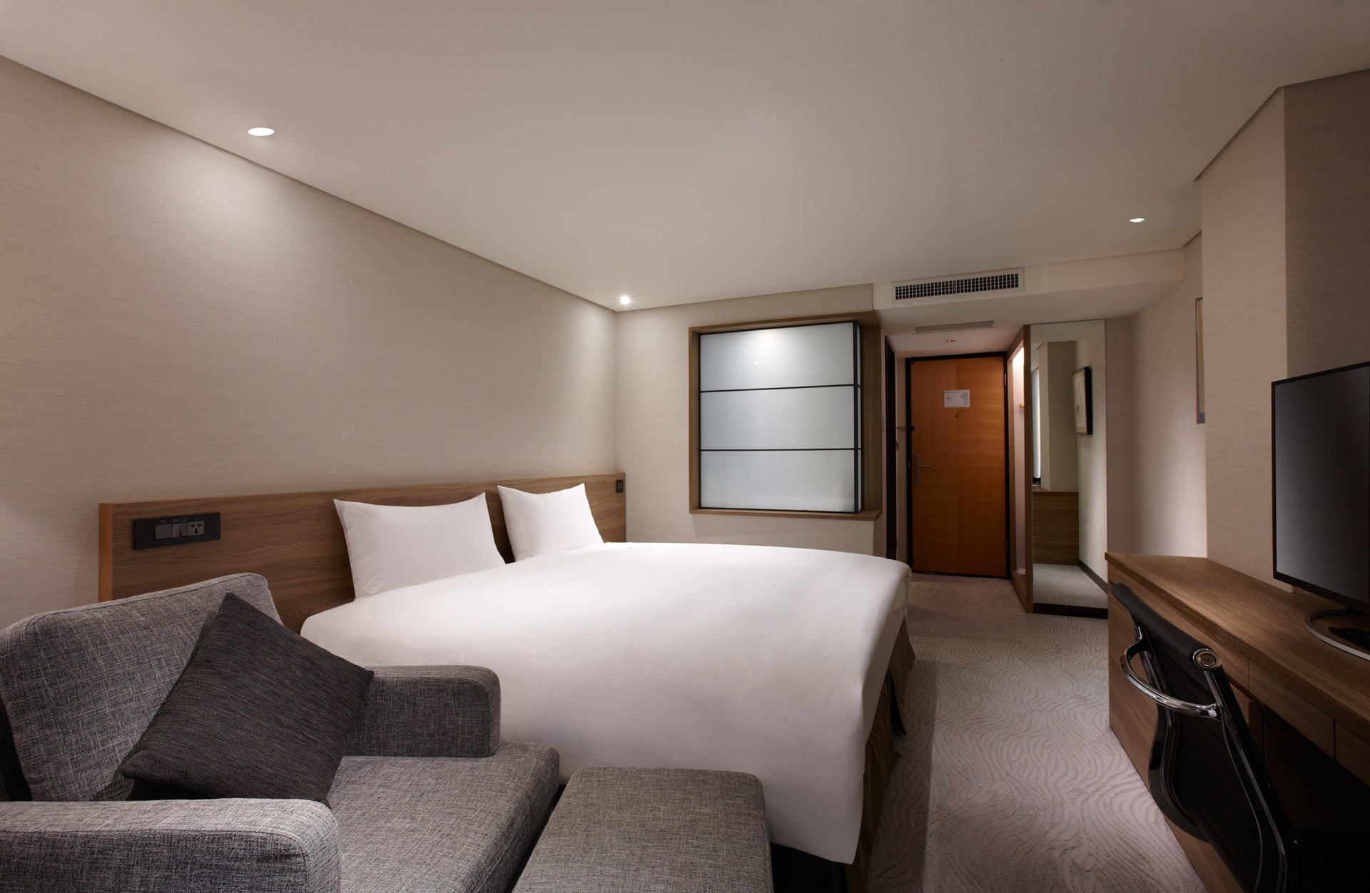 擁有簡約的線條與設計,七坪大的空間設置俐落簡潔的家具,床型可選擇一張加大雙人床或兩張標準單人床,客房配置免治馬桶及高級浴缸,客房使用更為彈性,適合團體出遊或商務出差入住。