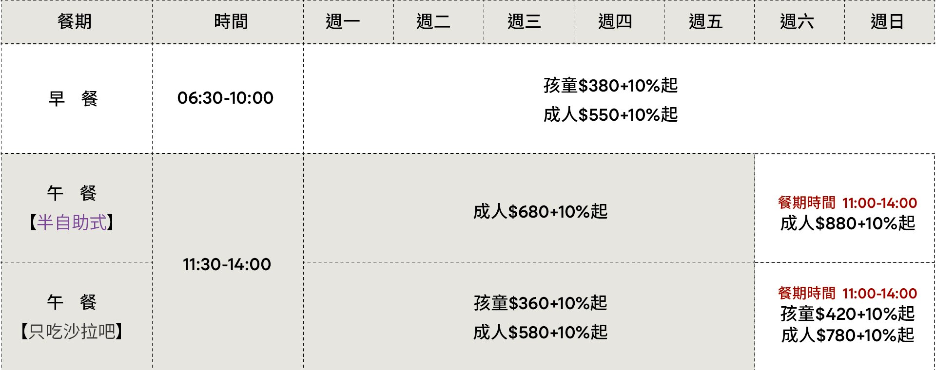- 兒童/清明節:4/3(五) - 4/6(一),以假日餐價收費。